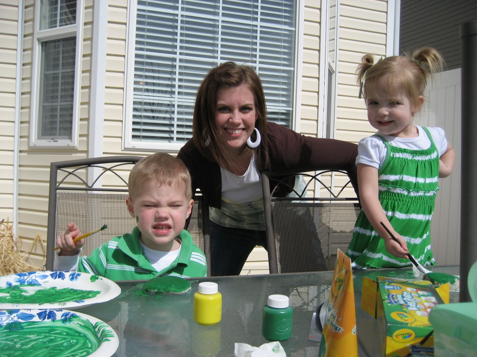 Left-my sister and her fam, Middle-my sister, parents, other sister and bro, Right-MY fam (yup, I'm the oldest of 5)!