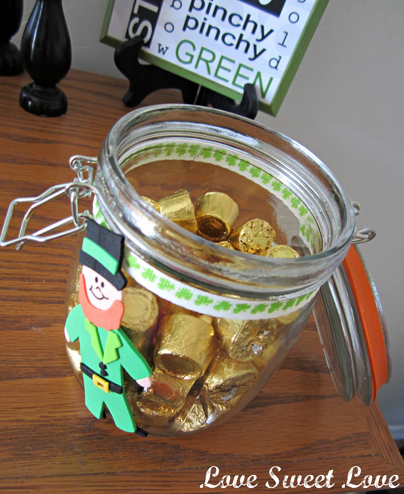 The main centerpieces on the tables-Faux ice-cream sundaes. I used this tutorial-Super cute! I wish I would have thought/had time to take pictures of these at home and staged them all cute and whatever so you could see them better, but oh well these cell phone pics will have to work! :) The "whip cream" is white tulle, the "cherry" is a red lindor truffle, bendy straw from Walmart, "ice-cream" is snickers glued around a styrofoam ball, "ice-cream in the sundae glass" is white tissue paper, sundae glasses $2 from Walmart. Each Sundae used about 1 and half bags of snickers. The stand they're sitting on you might recognize from this party! :)